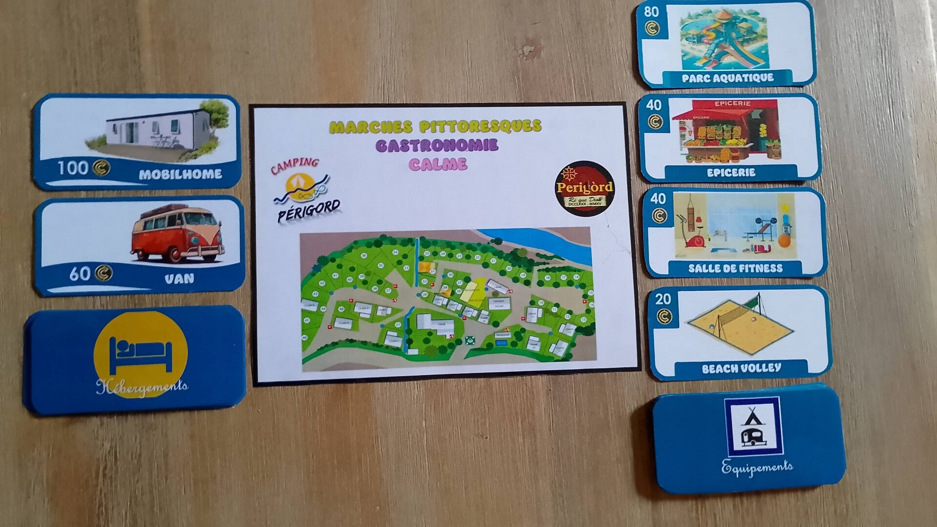 Thème du jeu : Les joueurs sont des gérants de campings, qu’ils devront améliorer et agrandir, afin d’attirer le plus de campeurs possible.